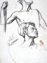 Study for Head and Shoulders of Courage (R); Two figure studies and a caricature of a female head (V)